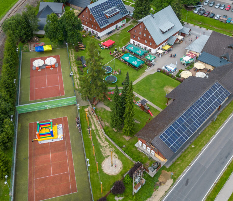 Poskytujeme ubytování různých kategorií – v Ostružné rodinný penzion, hotel *** či apartmány a v Petříkově dva penziony Penzion Skiland a Penzion U Orla s restaurací. Disponujeme kapacitami na konání různých firemních akcí, školení, ale i pobyty škol a školek v přírodě. Součástí areálu v Ostružné je restaurace a Expozice hudebních nástrojů, velké možnosti venkovního i vnitřního vyžití.